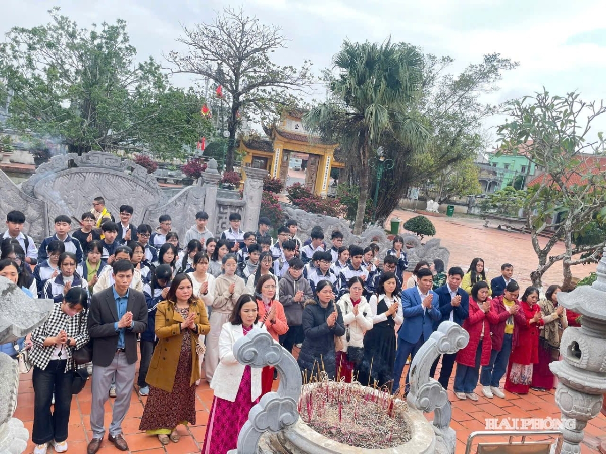 Nhiều trường học tổ chức đưa học sinh đến tham quan đền thờ Trạng Trình Nguyễn Bỉnh Khiêm.