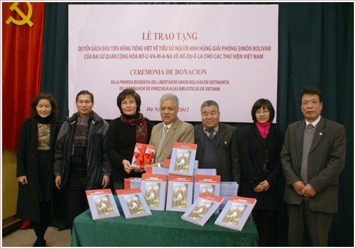 Ngày 28/2/2012, tại Thư viện Quốc gia Việt Nam, ngài Jorge Rondon Uzcategui, Đại sứ nước cộng hòa Venezuala tại Việt Nam đã trao tặng 200 cuốn sách "Simón Bolívar - người anh hùng giải phóng dân tộc, người sáng lập đất nước" cho các thư viện Việt Nam.