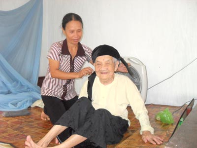 Phạm Thị Chuyển là người cao tuổi nhất thành phố. Riêng xã Hùng Thắng, huyện