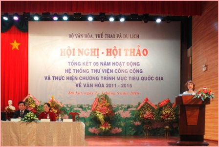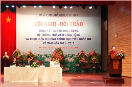 Thực hiện kế hoạch công tác năm 2016, từ 2-3/6/2016, tại thành phố Đà Lạt, Bộ Văn hóa, Thể thao và Du lịch tổ chức Hội nghị - Hội thảo tổng kết 5 năm hoạt động của hệ thống thư viện công cộng và thực hiện chương trình mục tiêu vì văn hoá (2011-2015).