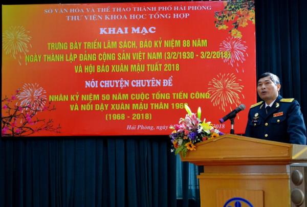 Cũng trong buổi triển lãm, thư viện KHTH đã tổ chức nói chuyện chuyên đề “ Kỷ niệm 50 năm Cuộc tổng tiến công và nổi dậy Xuân Mậu Thân năm 1968”. Với phần trình bày của Đại tá Nguyễn Đức Toàn, Trưởng Ban tuyên giáo Thành hội Hội Cựu chiến binh thành phố đã mang đến cho bạn đọc một buổi nói chuyện ý nghĩa về lịch sử hào hùng của dân tộc trong kháng chiến chống Mỹ.
