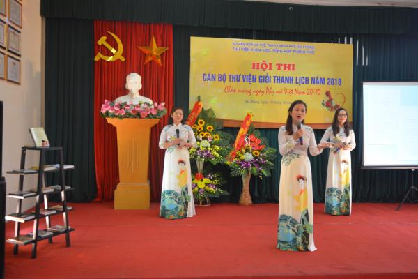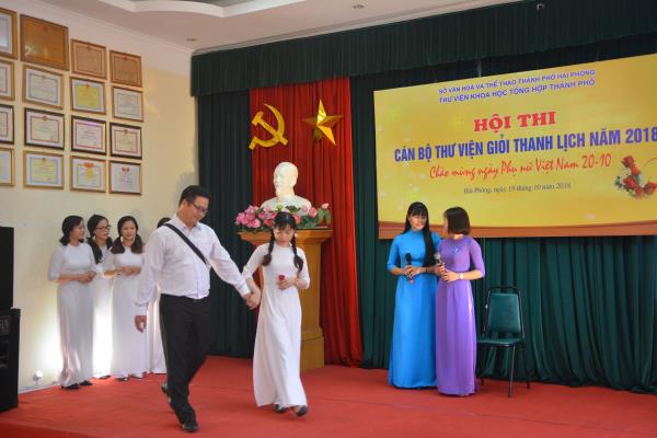 Trong không khí phấn khởi, tự hào kỷ niệm 88 năm ngày thành lập Hội Liên hiệp Phụ nữ Việt Nam (20/10/1930 - 20/10/2018) và thực hiện kế hoạch số 09/KH-TV ngày 28/9/2018 của Thư viện KHTH thành phố về việc tổ chức Hội thi cán bộ Thư viện giỏi năm 2018, sáng 19/10/2018, Thư viện KHTH Hải Phòng hân hoan tổ chức Liên hoan kỉ niệm ngày phụ nữ Việt Nam 20/10 và Hội thi cán bộ Thư viện giỏi thanh lịch năm 2018.