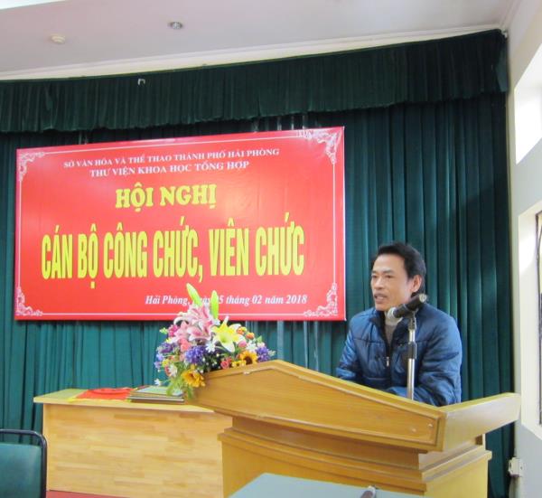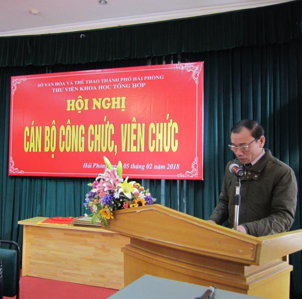 Thay mặt Sở Văn hóa và Thể thao Hải Phòng, Ông Phạm Hồng Thắng – Trưởng phòng Kế hoạch Tài chính phát biểu chỉ đạo, ghi nhận những nỗ lực phấn đấu của Thư viện trong năm qua, duy trì phát triển nhiệm vụ công tác trong năm tới 2018 và gửi lời chúc tết đến toàn thể CBCCVC thư viện.
