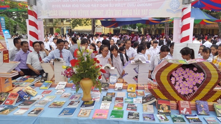 Tại gian trưng bày sách với chủ đề “ Chung tay xây dựng thư viện, thường xuyên đọc nhiều sách hay ” Thư viện Khoa học Tổng hợp đã trưng bày giới thiệu gần 1000 tài liệu tổng hợp về: Khoa học tự nhiên, khoa hoc xã hội, khoa học thưởng thức, kinh tế kỹ thuật, Biển đảo, tâm lý học, văn học, lịch sử, pháp Luật, ngôn ngữ học…Gian trưng bày sách của Thư viện đã thu hút đông đảo các vị đại biểu các thầy cô giáo và các em học sinh tham quan, cùng trong khuôn khổ buổi Lễ Ông Vũ Văn Tuấn Giám đốc Thư viện đã thay mặt Thư viện Khoa học Tổng hợp tặng sách cho trường Trung học Phố thông Lê Quý Đôn trị giá 5.000.000 đồng.