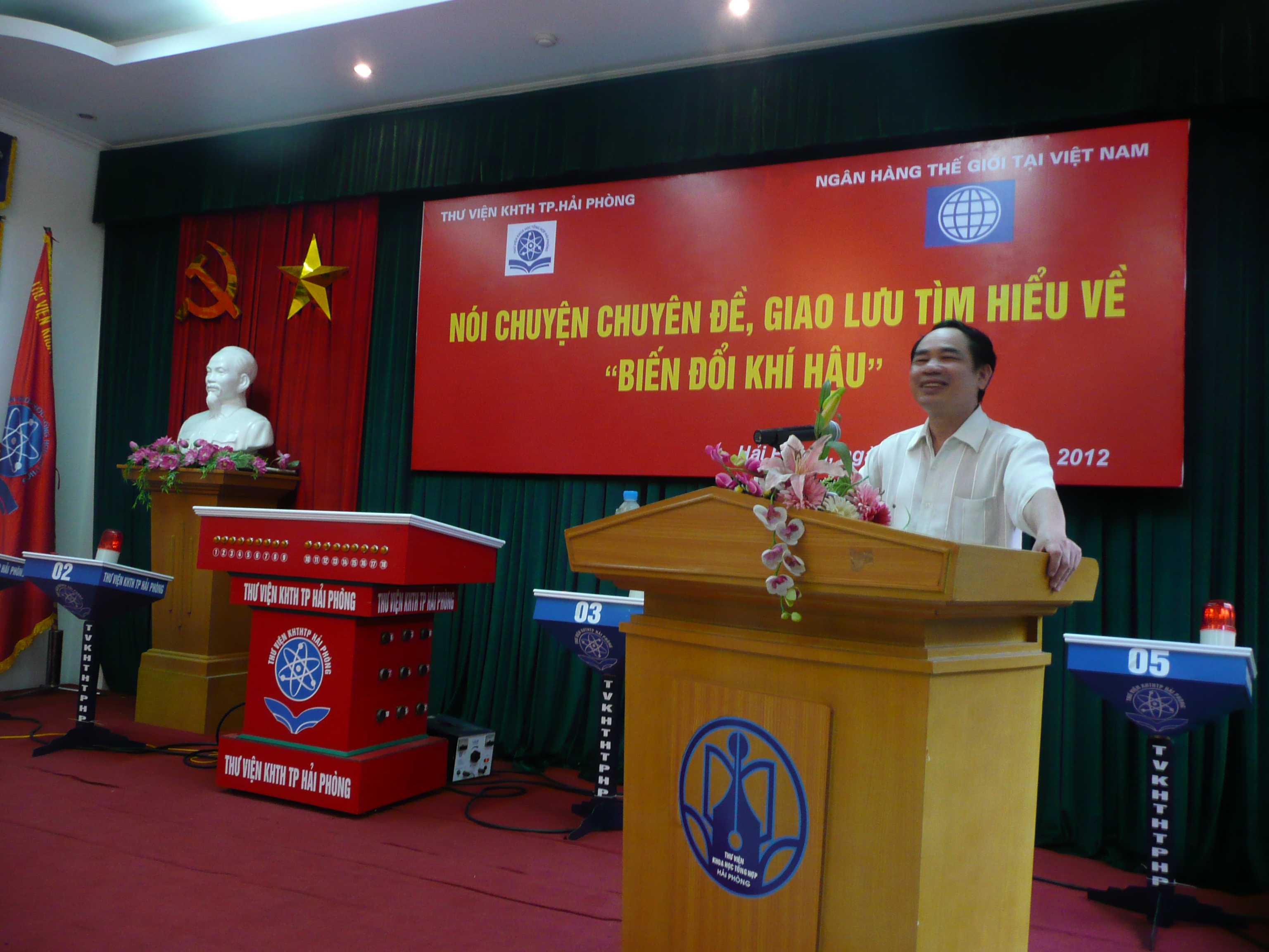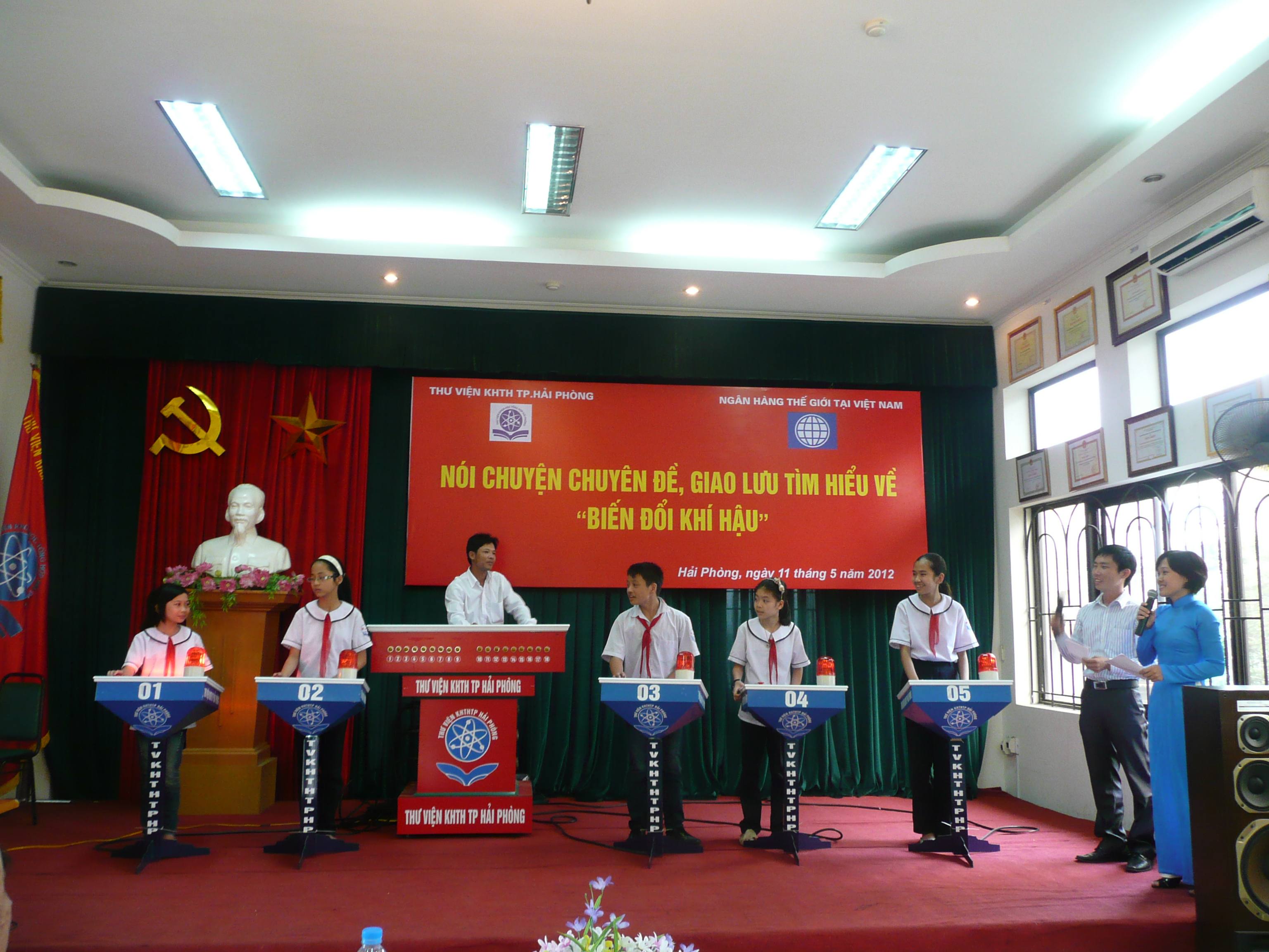 Biến đổi khí hậu đang là một vấn đề qua tâm của toàn xã hội vì những ảnh hưởng của biến đổi khí hậu đối với đời sống, tài nguyên thiên nhiên, và nền kinh tế. Với mong muốn cung cấp thêm những hiểu biết về biến đổi khí hậu và những ảnh hưởng của biến đổi khí hậu đổi với cuộc sống của con người. Sáng ngày 11/5/2011, Thư viện KHTH Hải Phòng đã phối hợp với tổ chứcNgân hàng Thế giới tại Việt Nam tổ