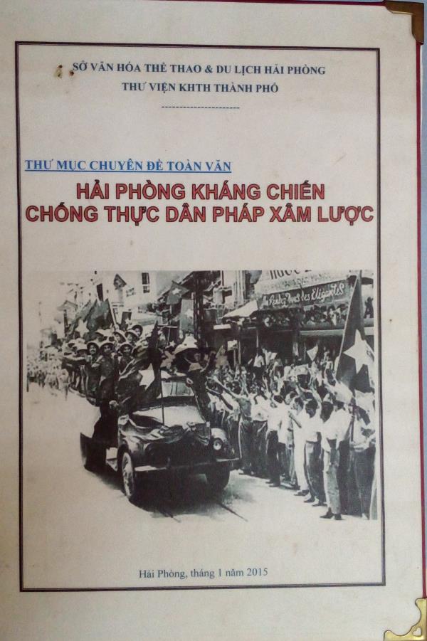 Hưởng ứng công tác tuyên truyền, giáo dục để khơi dậy niềm tự hào, tự tôn dân tộc; cổ vũ, động viên các tầng lớp nhân dân phát huy tinh thần đại đoàn kết dân tộc; thực hiện thắng lợi Nghị quyết Đại hội XII của Đảng, Thư viện Khoa học Tổng hợp Hải Phòng trân trọng giới thiệu đến bạn đọc hơn 200 tư liệu quý qua triển lãm “Kỷ niệm 70 năm ngày Toàn quốc kháng chiến (19/12/1946-19/12/2016” tại Phòng Bảo quản - Di sản Văn hoá Thành văn Hải Phòng .